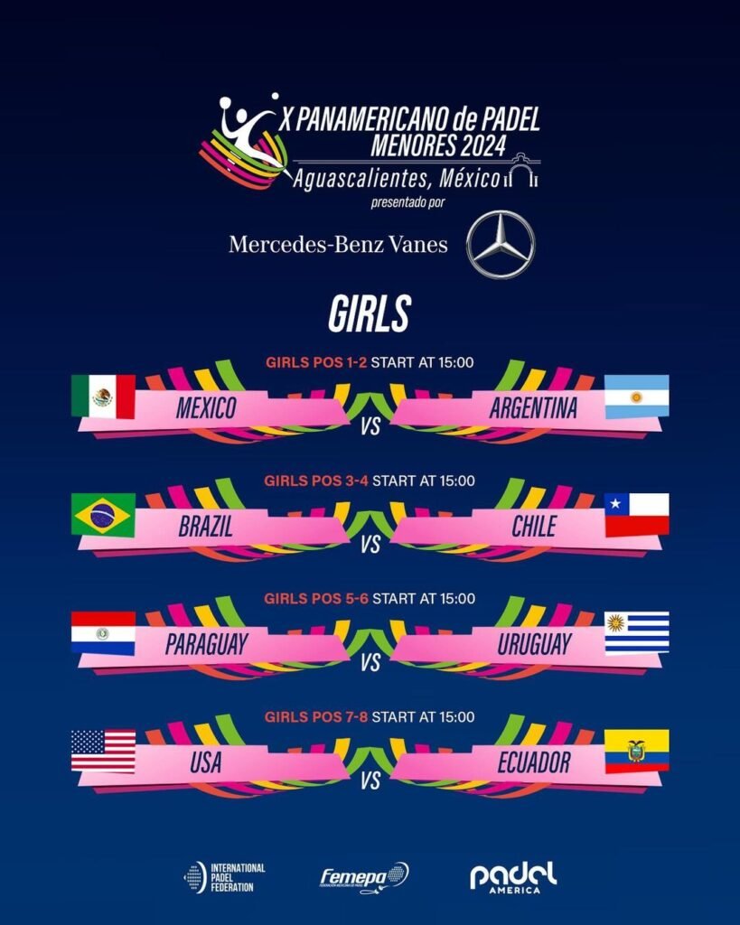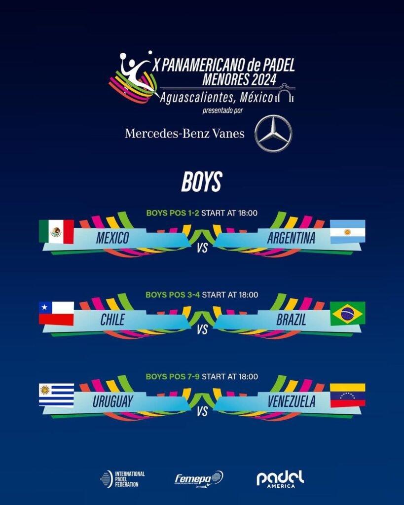 La Selección femenina jugará su final desde las 18:00 (hora argentina) en el club Padel 3015 de la ciudad de Aguascalientes. Luego, a las 21:00, será el turno de la masculina en el mismo escenario.